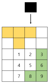 이를 위해 채우기 불가능한 경우 현재 도형이 포함된 3번째 줄(2,5,8), 4(3,6,9)번째 세로 줄을 불가능한 줄로 만들어버려 다음 탐색 시 이를 반영합니다.