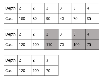 탐색이 끝나면 기록해둔 비용과 depth를 검사하면서 최소 비용을 찾아냅니다.