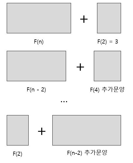 f(n-4)부터 추가문양 만을 더하는 이유는 앞서 계산한 값들이 중복되기 때문입니다.